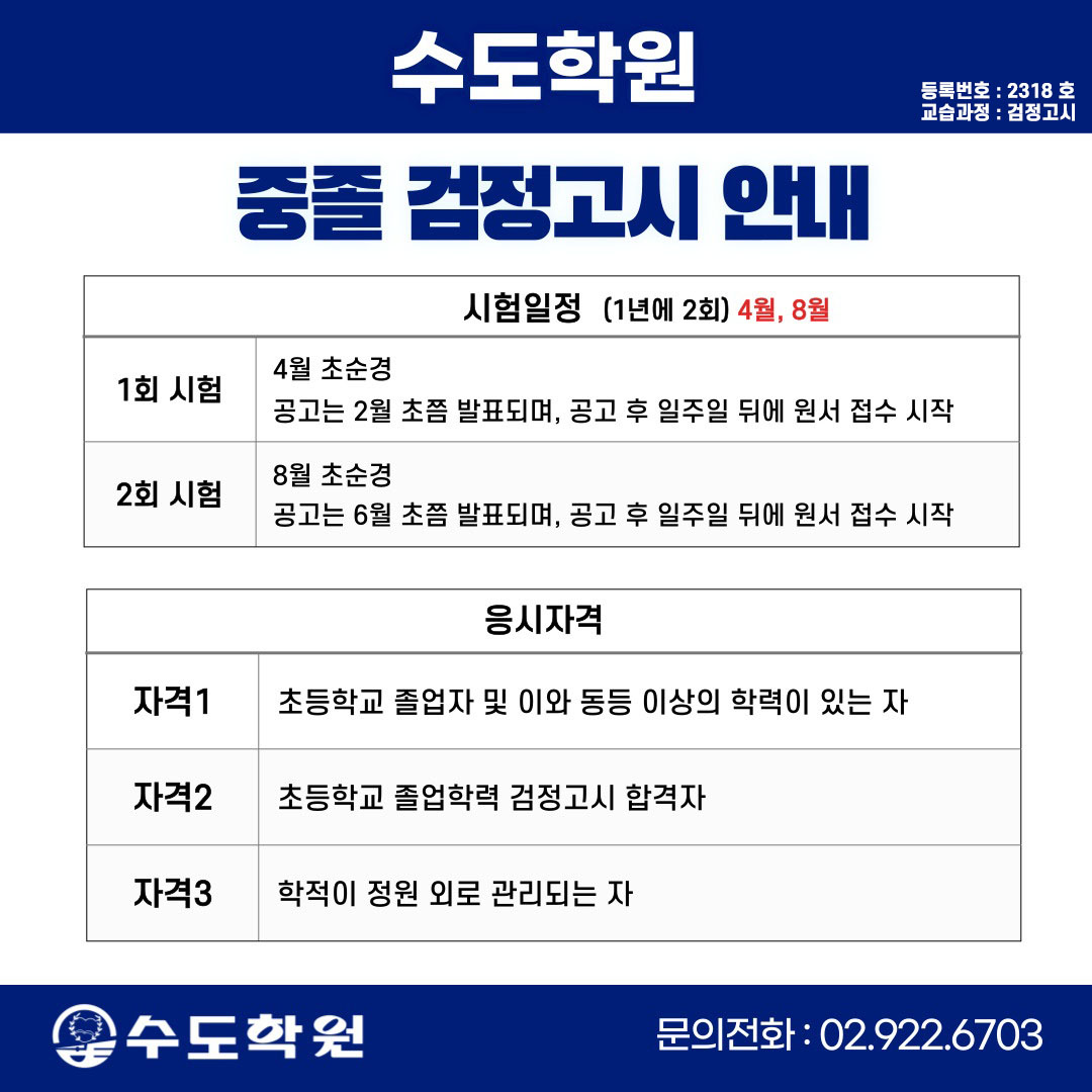 | 2025년도 제 2회 검정고시 대비 주간반, 일요반 안내 (31) | 2025.04.10 |